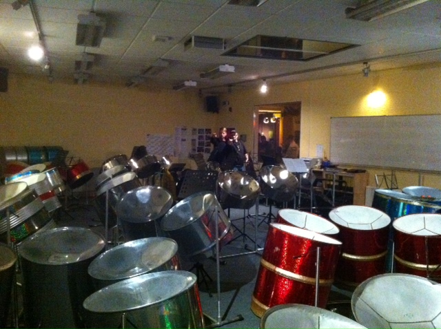 (ca. 35 Zuschauer). Wunderbarer Abend! Sehr schöne Stimmung! Und auch hinter der Bühne stimmte es. Das Bild oben zeigt den amtlich großen Backstageraum, der es Junior zum ersten Mal erlaubte, all seine Trommeln aufzubauen und Probe zu klöpeln. Smelly und Marcellus feiern ihn von ganz hinten dafür ab: