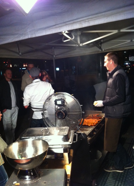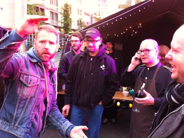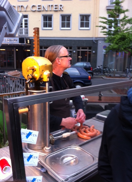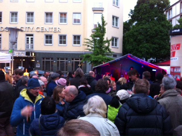 In Düsseldorf sehen die Menschen ja naturgemäß noch besser aus und bekommen, man muss es leider zugeben, dort viel viel bessere Bratwürstchen gegrillt. Vor unserer Zeltbühne am Samstag zog dann der Grillduft und Sound mit zunehmender Dunkelheit auch immer mehr Menschentierchen an. Die wollten gar nicht mehr weg! 1000 Küsse an unsere Freunde vom Kunstverein Reinraum e.V. , die eine total tolle Straßenatmosphäre geschaffen haben. 10.000 Bisse an unsere neuen Metzgerfreunde um Peter Inhoven.