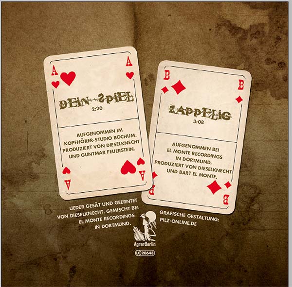 Ab heute offiziell in der Welt: Vinyl-Single Nummer Eins „Dein Spiel“. Rund um das Thema RISIKO. Auflage: 150 Teile. CoverArtwork von Claus Pilz. Abgabepreis: 6 Euro (mail an info @dieselknecht.net). Die Party dazu steigt am 10.04.15 ab 19.30 Uhr in unserer Lieblings-Hafenschänke Subrosa!! Vinyl-Single Nummer Zwei „Der letzte Wilderer“ folgt am 15.05.15. Thema dann HUNGER. Single Drei, Vier und Fünf folgen. Wir sehen und hören uns! (psst…bitte weitersagen, liken, teilen usw…)