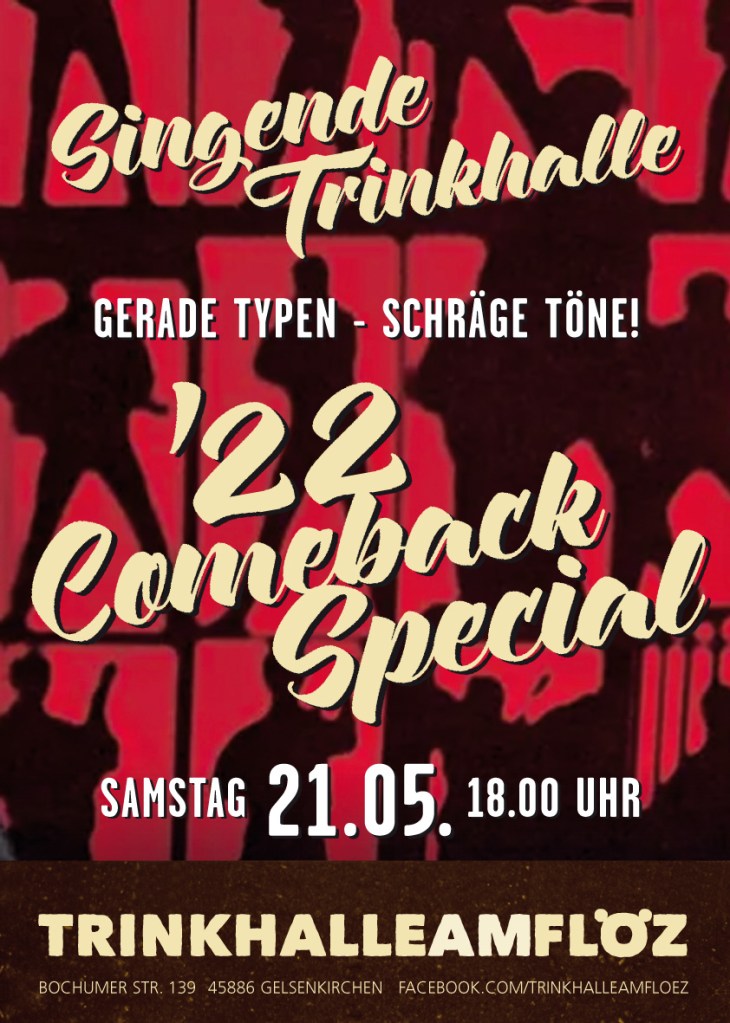 Bevor wir uns am 19.06.2022 um 15.00 Uhr wieder in voller Besetzung und mit erschöpfendem Einsatz im Kurpark Hamm präsentieren werden, hier ein kleiner Hinweis auf ein großes Ereignis in unserer geliebten Nachbarstadt Gelsenkirchen. Dort sind Teile der Band + Teile der Kumpel-Band Fisch & Oldrik zu sehen bzw. zu hören. Wenn Ihr also die zarten Stimmbändchen in Schwingung bringen oder aber Euch die Kehle mal so richtig freischreien wollt, seid herzlich WILLKOMMEN! (weitere Dieselknecht-Termine sind in Arbeit…)
